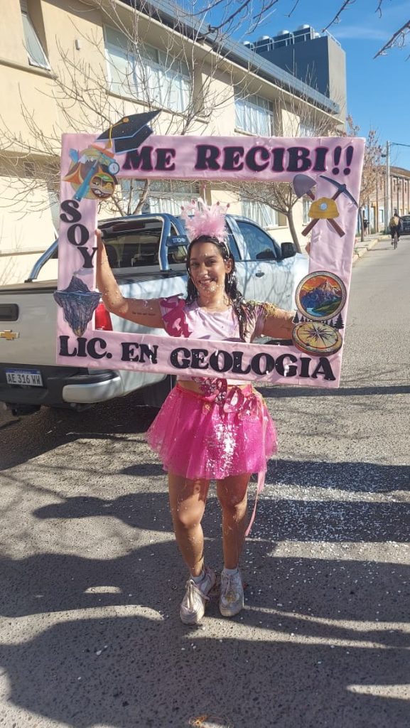 “Felicidades a la nueva licenciada en Geología, Florencia López, que el día de hoy presentó su tesis aprobándola con 10. Decirle que estamos muy orgullosos de ella, de sus logros y desearle lo mejor en esta nueva etapa”.