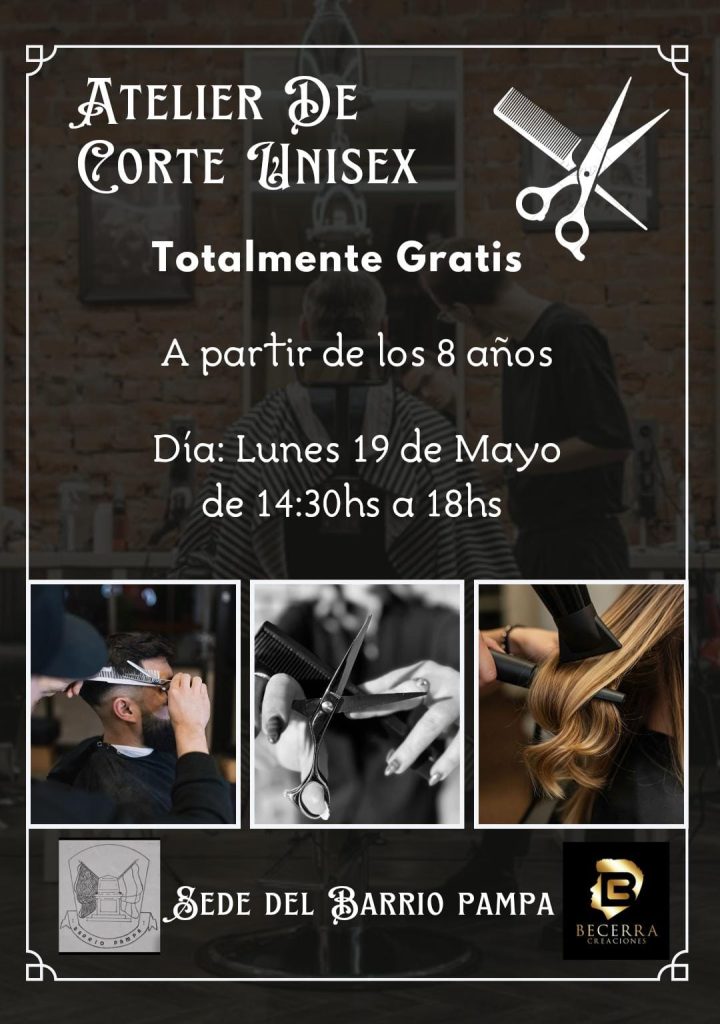 El próximo lunes 19 de mayo, se llevará a cabo una jornada solidaria de corte de pelo unisex en la sede del barrio Pampa, organizada por Becerra Creaciones. La actividad, totalmente gratuita, está destinada a niños, niñas, adolescentes y personas adultas a partir de los 8 años, y se desarrollará entre las 14:30 y las 18:00 horas.