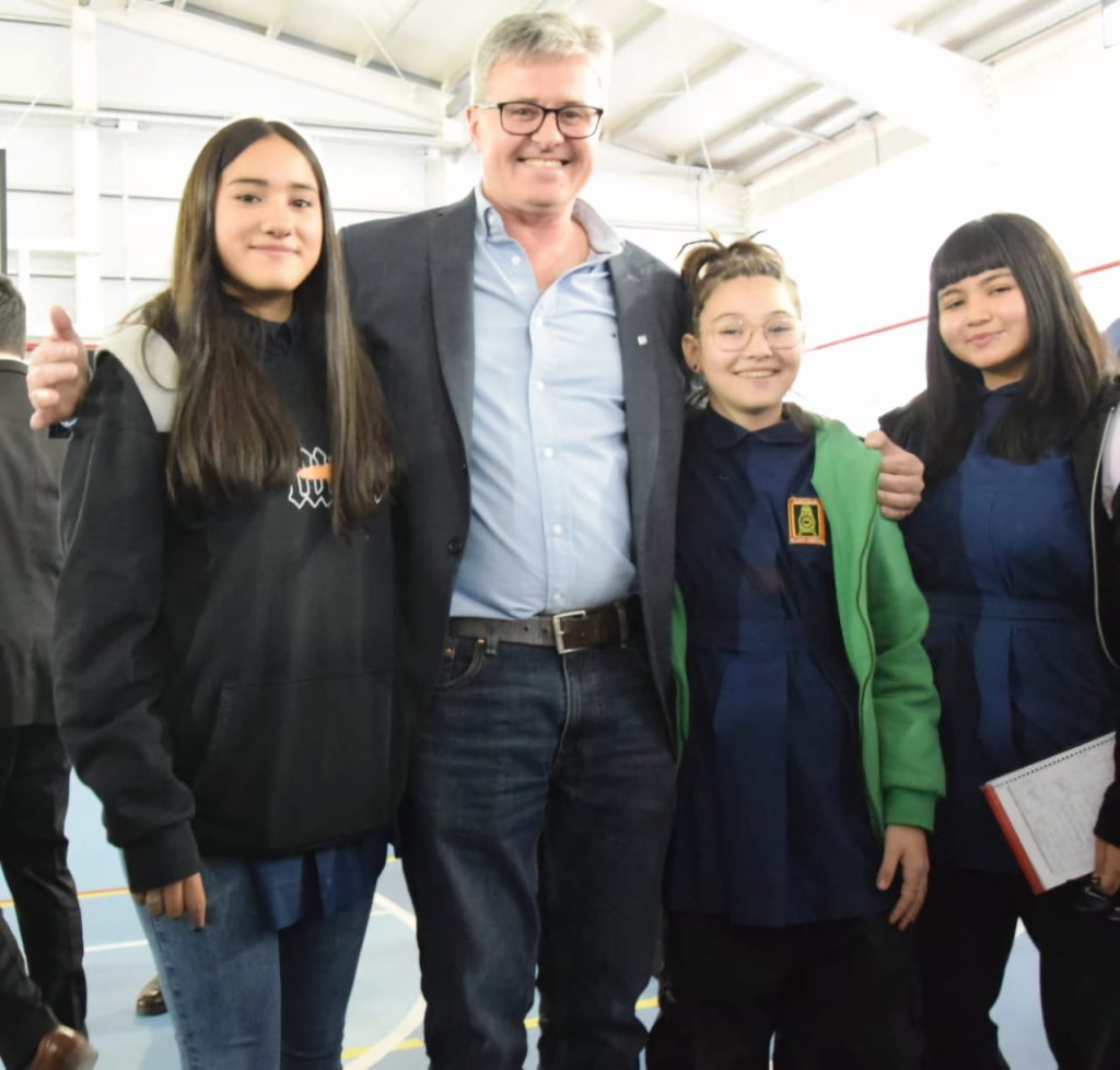 Del acto participaron además la ministra de Desarrollo Humano, Gobiernos Locales y Mujeres, Julieta Corroza; la secretaria provincial de Obras Públicas, Tanya Bertoldi; la presidenta del CPE, Glenda Temi; y el delegado de la Región Comarca, Rubén García, junto al equipo directivo de la EPET N° 10.