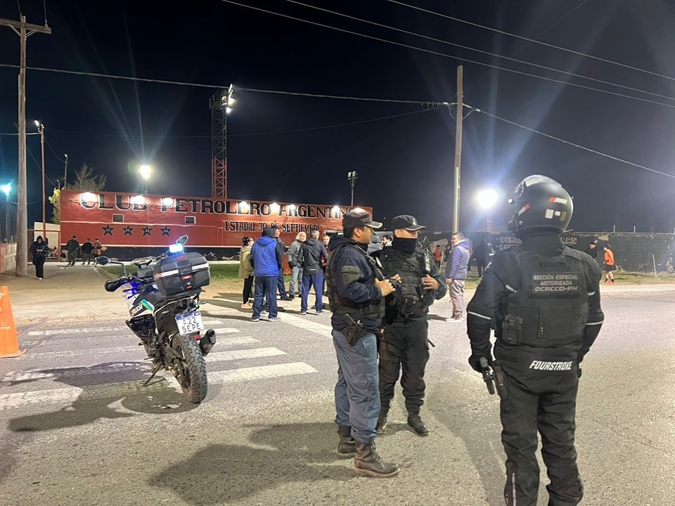 El secretario de Seguridad, Ramón Lecaro (de espaldas a la izquierda en la fotografía) acudió al lugar. (Foto: Facebook Petrolero Argentino)