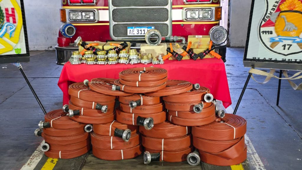 En el caso del aporte de Pluspetrol, se trató de 10 equipos estructurales y 10 de protección de incendios. El alto costo que implica este equipamiento y el uso constante que tiene para los voluntarios es de alta necesidad para la lucha contra incendios.
