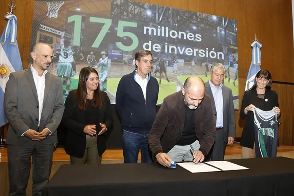 El gobernador de la provincia de Neuquén, Rolando Figueroa, firmó un convenio con cinco equipos de la provincia que participan en el Torneo Federal de Básquet. Entre ellos, se encuentra el equipo de Plaza Huincul que es el unico que sigue en competencia.