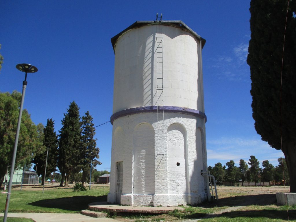 Diseñado por la empresa inglesa Ferrocarriles del Sud, este tanque de agua fue construido en la década de 1920. Su estructura metálica aún se mantiene en pie tras más de un siglo, aunque el pozo desde donde extraía el agua es incluso anterior: fue excavado entre 1912 y 1913, durante la construcción del ramal ferroviario hacia Zapala.