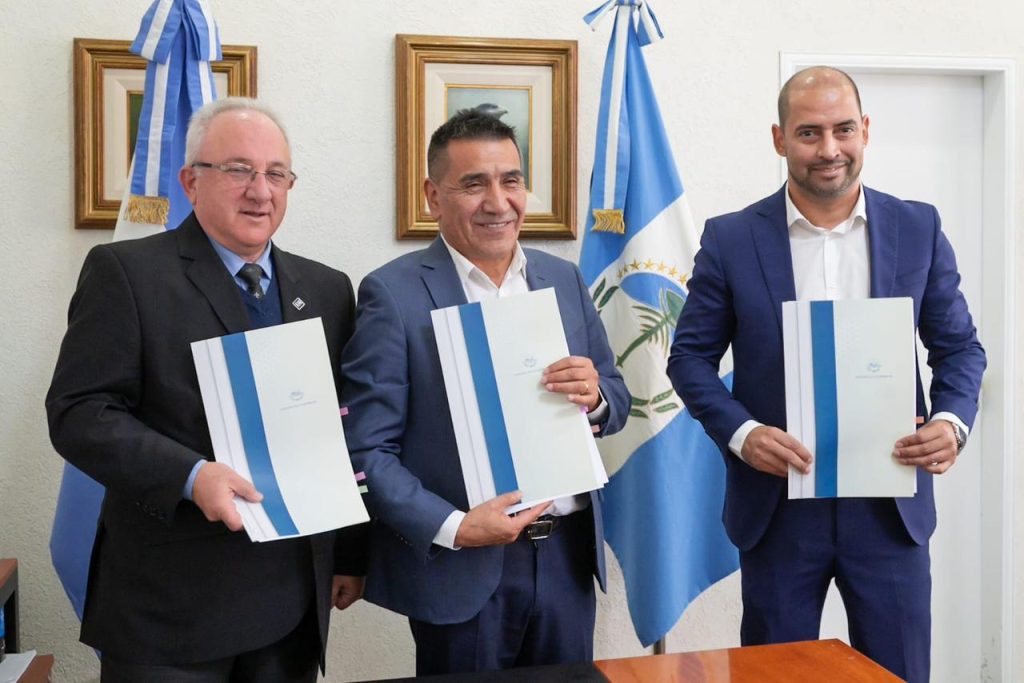 El acuerdo contempla la colocación de 64 paneles en el Colegio Preuniversitario Técnico UTN-FRN y en el edificio municipal de calle Elordi. Del acto participaron el intendente Ramón Rioseco, el decano Pablo Liscovsky y el jefe de Gabinete y Gobierno, Walter Mardones.