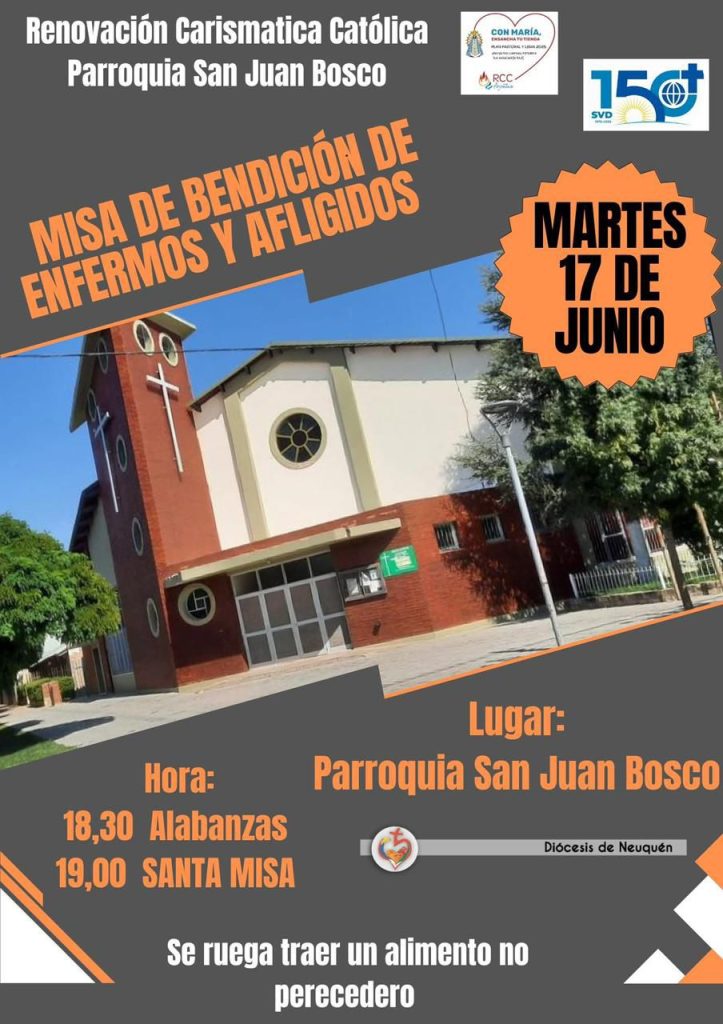 La renovación carismática católica organiza una Misa de Bendición para Enfermos y Afligidos este martes 17 de junio en la Parroquia San Juan Bosco.