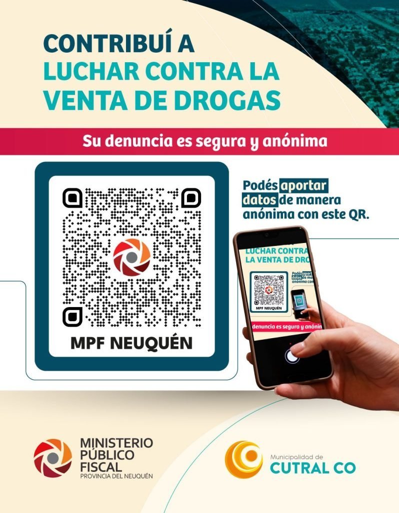 En el marco de una iniciativa para fortalecer la seguridad ciudadana y combatir la narcocriminalidad, la municipalidad de Cutral Co informó su adhesión a la campaña del Ministerio Público Fiscal de la Provincia del Neuquén, que promueve la denuncia anónima y segura de actividades vinculadas a la venta de drogas.