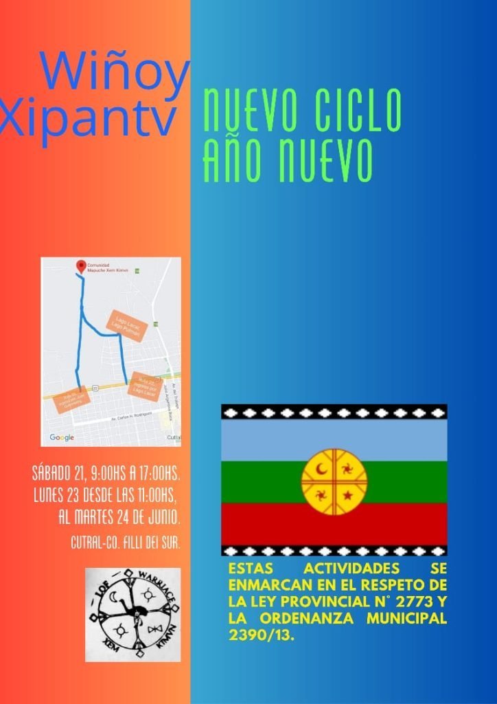 En el marco del respeto a las tradiciones del pueblo mapuche y con el reconocimiento de la Ley Provincial Nº 2773 y la Ordenanza Municipal 2390/13, el Lof Xem Kimvn invita a la comunidad a participar de una serie de actividades preparatorias para la vigésima celebración del Wiñoy Xipantv, el cambio de ciclo y el inicio del nuevo año mapuche.