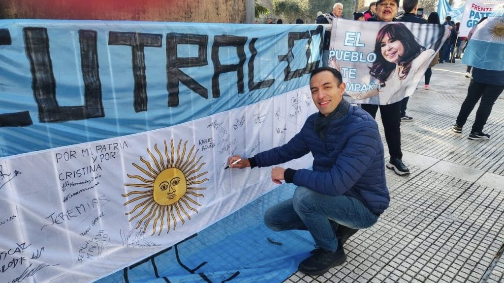 El intendente de Cutral Co, Ramón Rioseco, y el presidente del Concejo Deliberante, Jesús San Martín, participaron este miércoles de la masiva movilización en Plaza de Mayo, en la ciudad de Buenos Aires, en apoyo a Cristina Fernández de Kirchner, luego de que la Justicia confirmara la prisión domiciliaria en su contra.