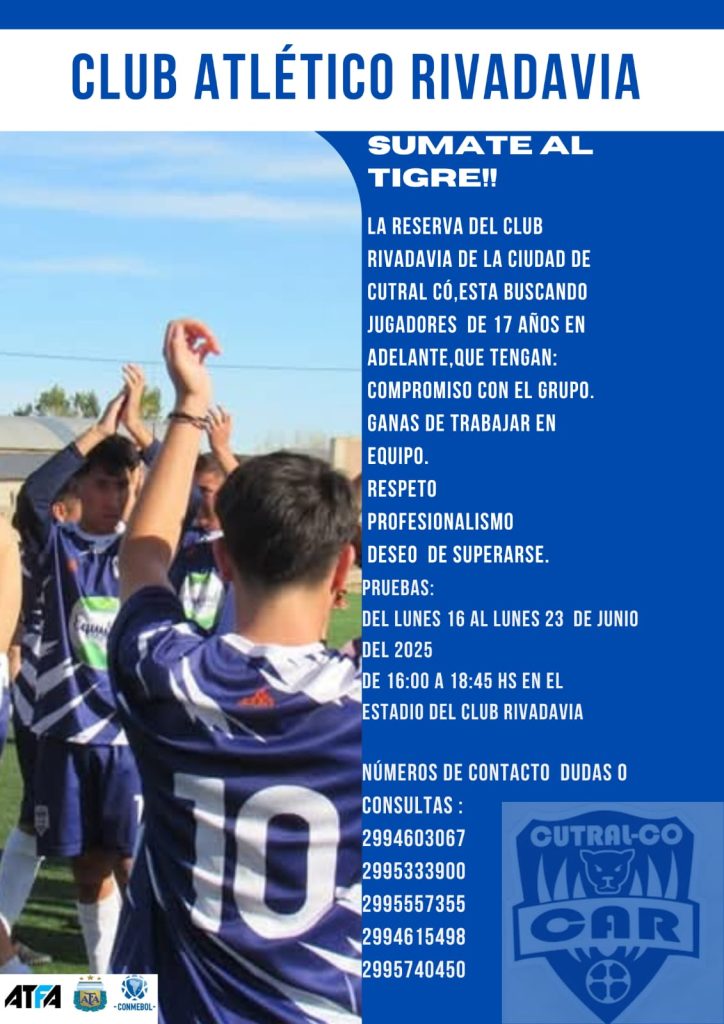 Desde el club de Cutral Co buscan a jugadores a partir de los 17 años para que se sumen a la categoría Reserva.