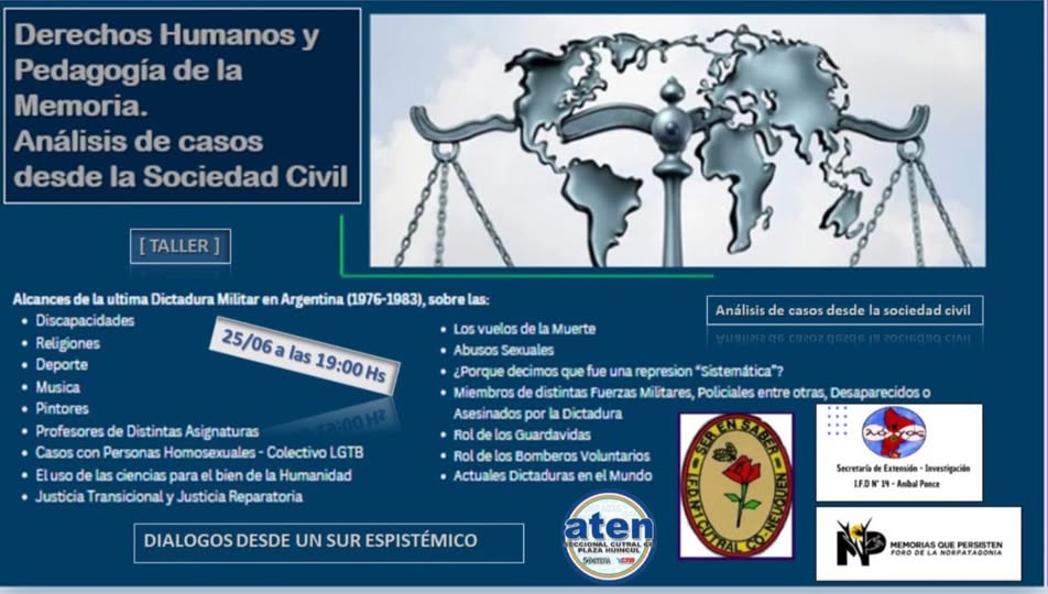En el marco de las actividades del Operativo Cutral Co, la seccional de ATE Cutral Co y Plaza Huincul convoca a toda la comunidad educativa y público interesado a participar del curso-taller titulado “Derechos Humanos y Pedagogía de la Memoria: Análisis de casos desde la sociedad civil”, que se dictará el próximo miércoles 25 de junio a las 19:00 en el Instituto de Formación Docente N°1 de Cutral Co.