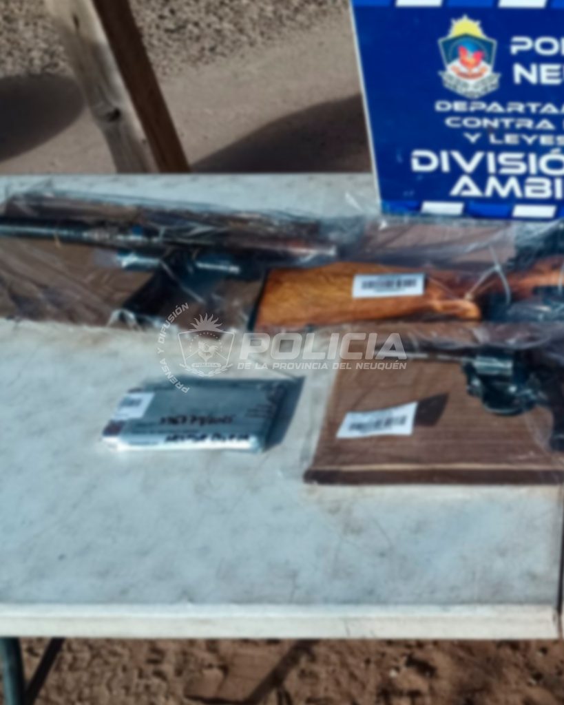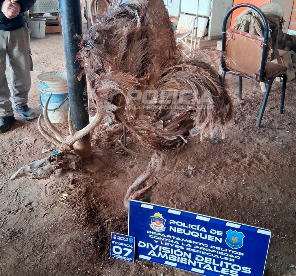 El operativo, realizado en la mañana de este viernes, incluyó un allanamiento en la vivienda del investigado, donde se secuestraron armas de fuego, incluyendo una carabina calibre 22 con supresor, varios revólveres, además de una cabeza de ciervo y un choique sin vida, que fue entregado a la Dirección Provincial de Fauna.
