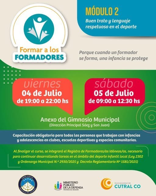 En el marco de las políticas locales orientadas a garantizar espacios seguros para niñas, niños y adolescentes, se llevará adelante el segundo encuentro del ciclo “Formar a los Formadores”, una instancia de capacitación obligatoria para quienes desempeñan funciones en el ámbito deportivo infantil y juvenil.