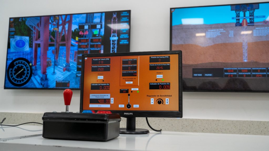 “El simulador está diseñado para hacer prácticas de control de pozos, prevención de pega de tuberías y resolución de problemas operacionales durante la perforación. Perforar un pozo es un arte muy complejo. Que los alumnos tengan la posibilidad de empezar a perforar, aunque sea de forma simulada, es de vital importancia para la industria petrolera nacional”, comentó.