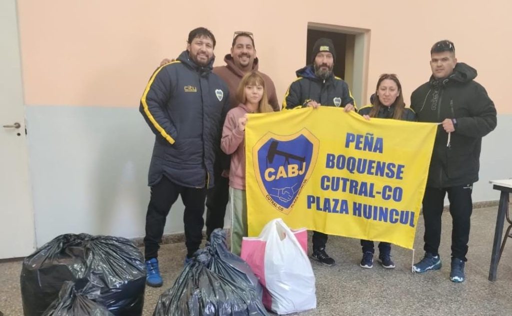 La Peña Boquense de Cutral Co y Plaza Huincul completó la campaña de ropa de abrigo 2025 y entregó lo recolectado al barrio Progreso.