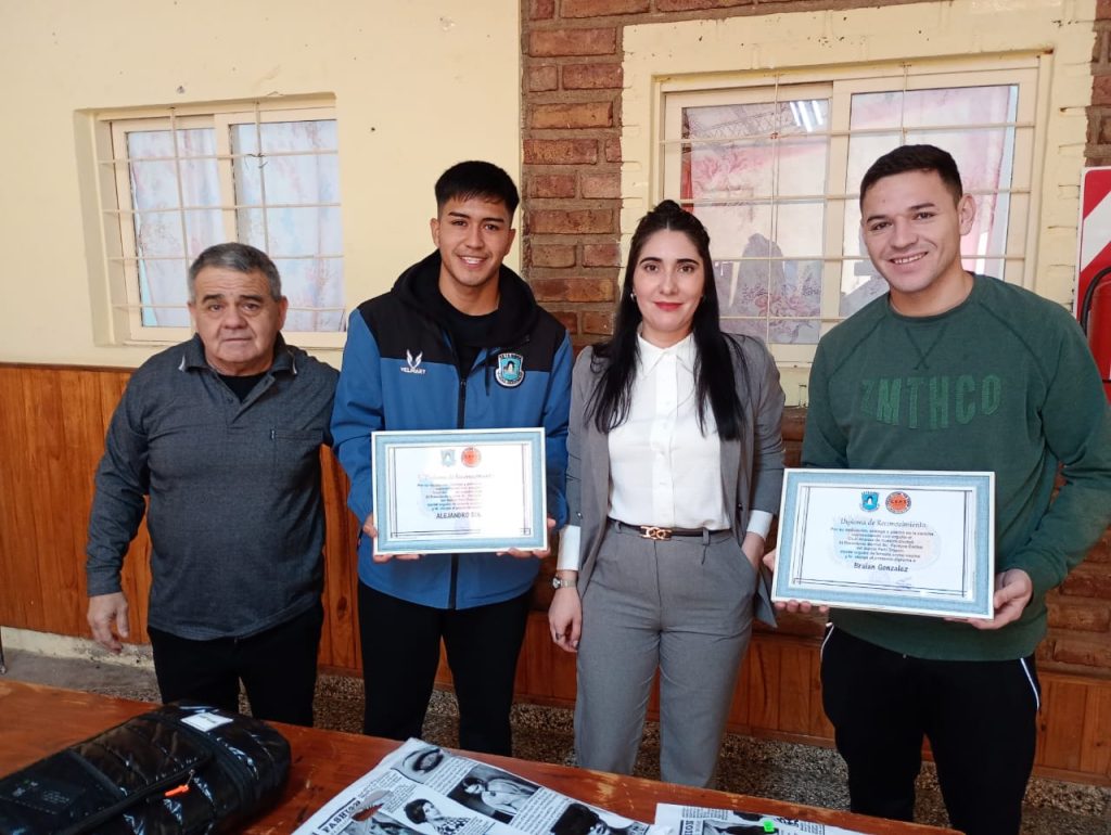 En la jornada de hoy, el presidente del barrio Carlos Pereyra y la vicepresidenta Micaela Zarate le hicieron un reconocimiento a los jugadores de Alianza Braian Gonzalez y Alejandro Diaz.