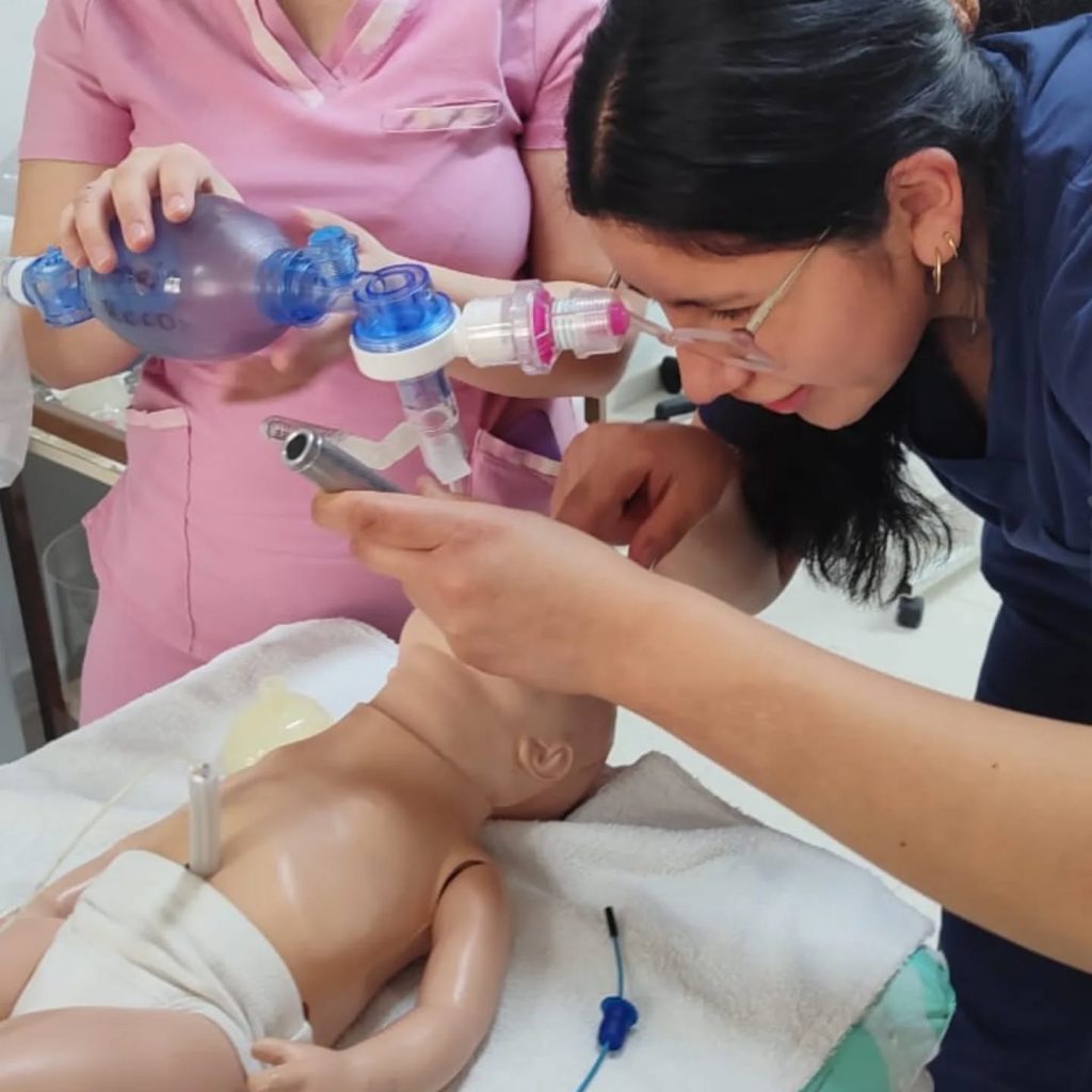 La actividad consistió en una charla acompañada de una simulación clínica sobre recepción y reanimación neonatal, con el objetivo de reforzar conocimientos esenciales en el ámbito de la atención perinatal. Participaron las estudiantes Kathlyn Huertas, Dalma Bohorquez y Angela Salles, quienes fueron guiadas por la Licenciada en Enfermería Cristina Parada, responsable de coordinar la jornada.