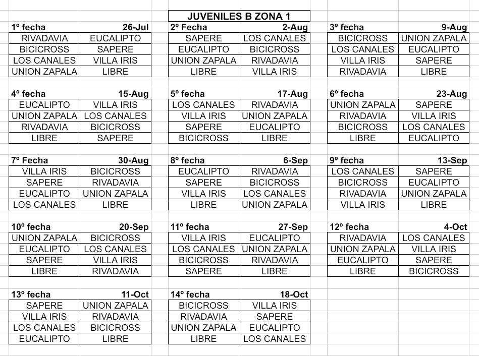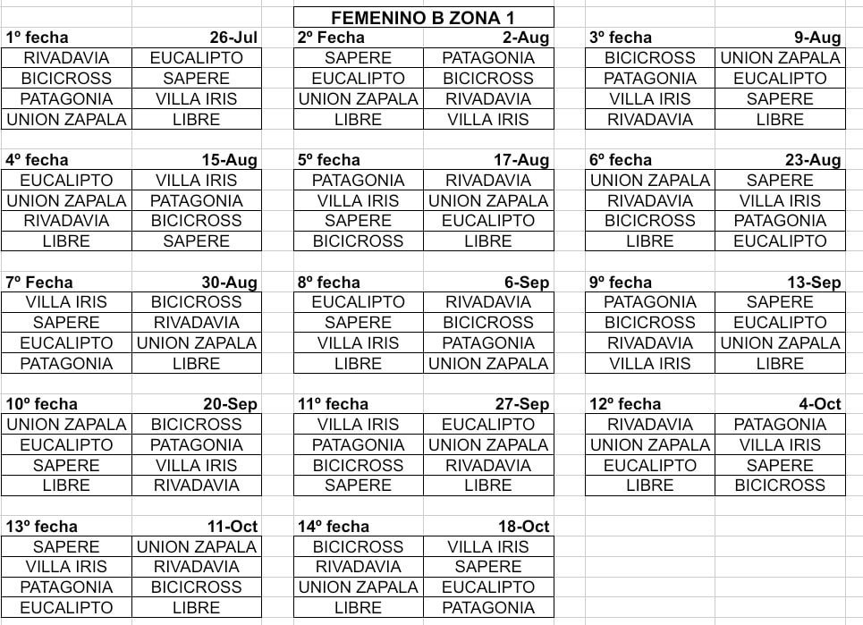 Para Rivadavia en la categoría B le toca en la Zona 1 con Eucalipto, Bicicross, Sapere, Los Canales, Villa Iris y Unión de Zapala.