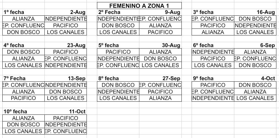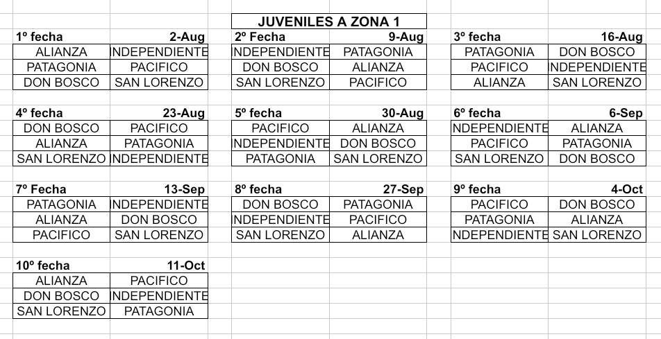 El grupo para Alianza quedó de la siguiente manera: Alianza, Independiente, Patagonia, Pacifico, Don Bosco y San Lorenzo en la zona A.