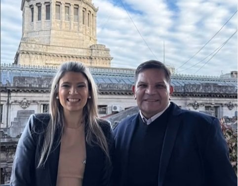Luego se lo observa junto a la diputada nacional Nadia Márquez de LLA y de fondo el Congreso de la Nación.