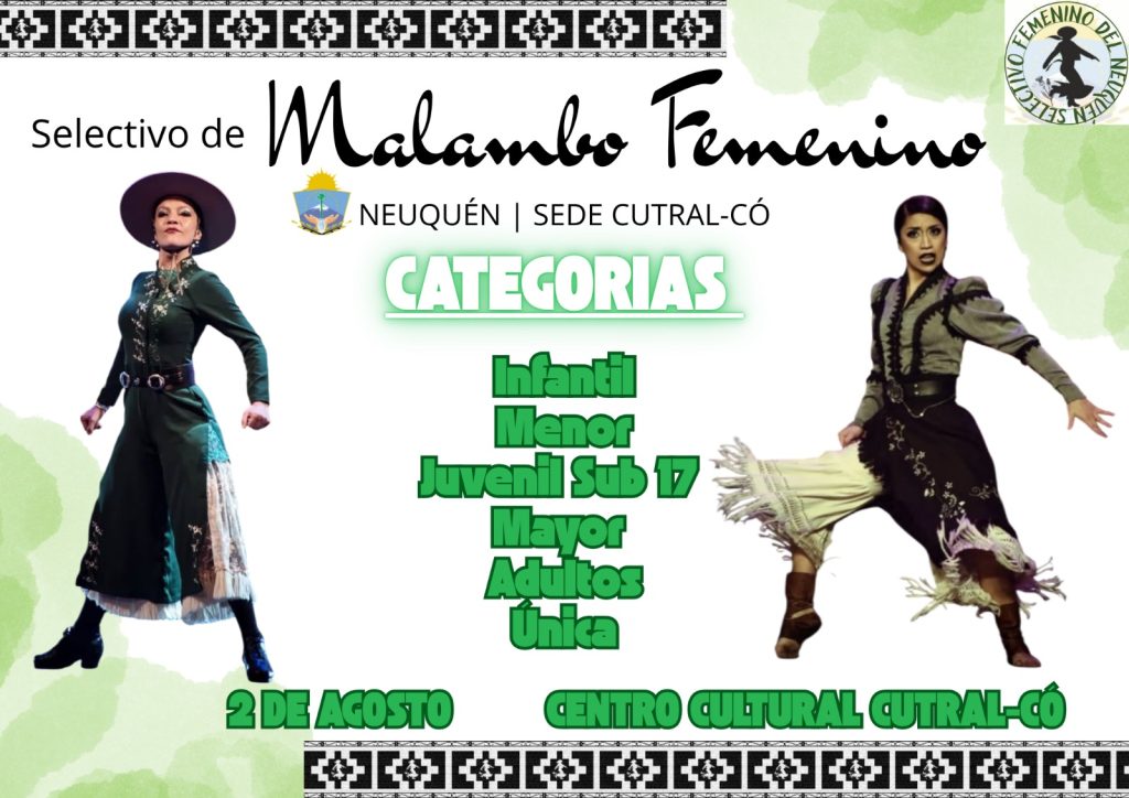 El próximo sábado 2 de agosto, el Centro Cultural José Rioseco de Cutral Co recibirá a las mejores bailarinas de malambo femenino de la provincia de Neuquén para disputar el Selectivo Provincial.