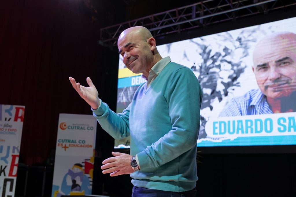 El escritor contemporáneo Eduardo Sacheri estuvo en el cierre de la primera jornada de la 3° edición de la Feria del Libro y Expovocacional que se hizo en Cutral Co.