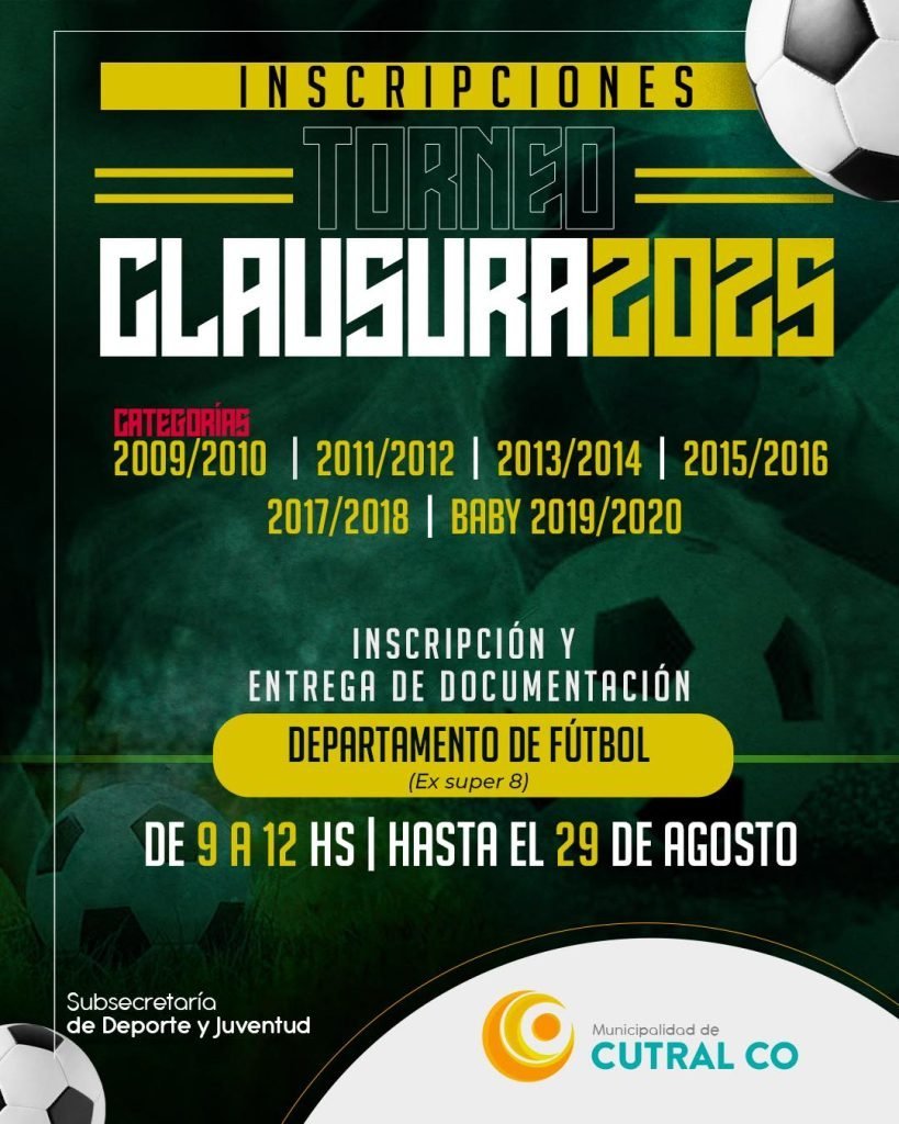 Las inscripciones y entrega de documentación se realizan en el Departamento Fútbol (ex super 8) en el horario de 9 a 12. La fecha límite es el 29 de agosto.