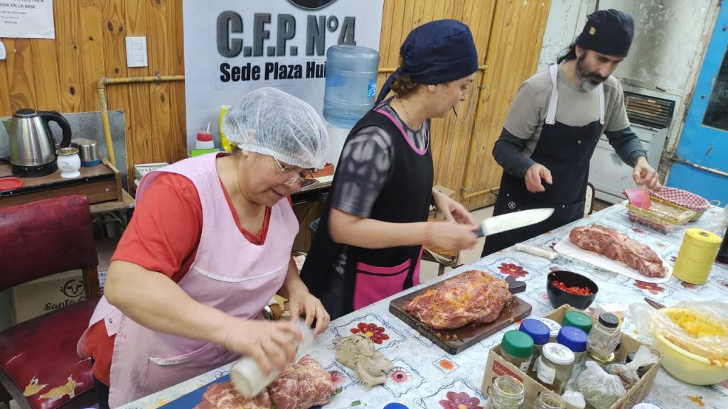Los alumnos, alumnas, y docentes del área trabajan en los cursos de Maestro Pizzero y elaborador de chacinados y ahumados.