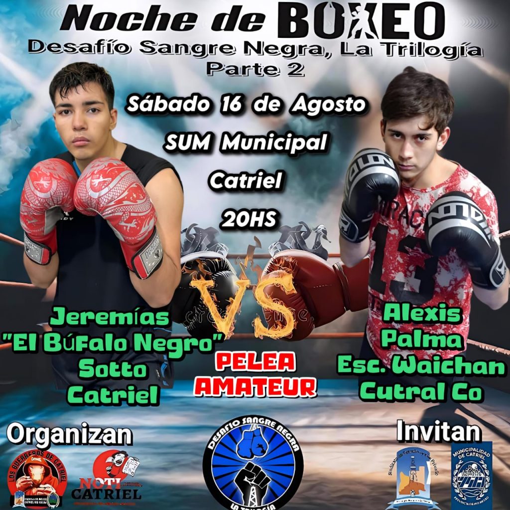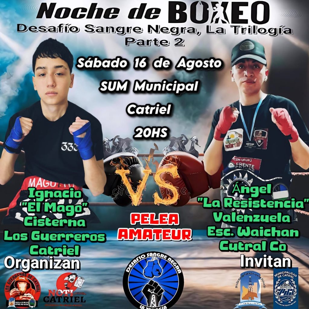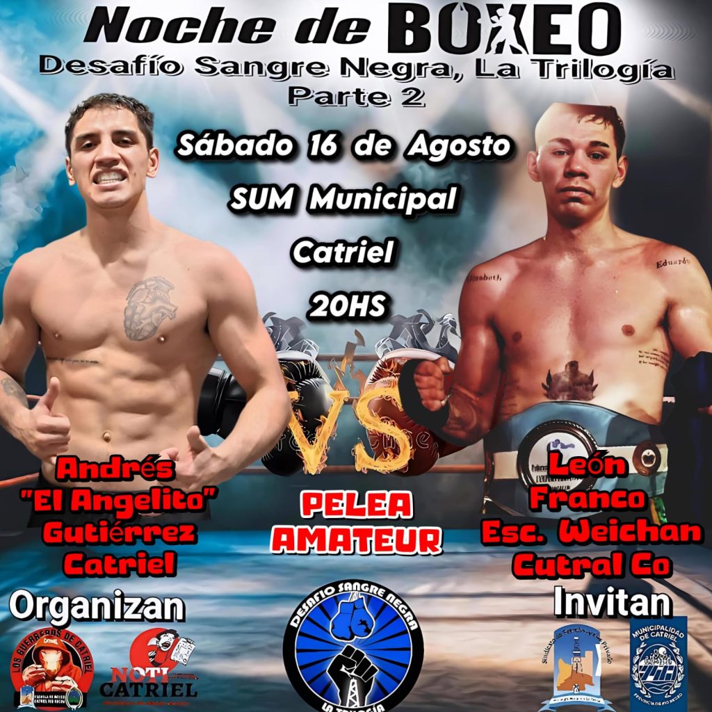 Los combates se realizarán en el SUM Municipal de Catriel a partir de las 20 horas el sábado 16 de agosto.