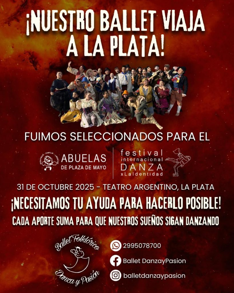 Además quienes deseen colaborar con el ballet lo puede hacer comunicándose al 2995078700 o al ALIAS proyecto.dyp cuenta de Naranja X.
