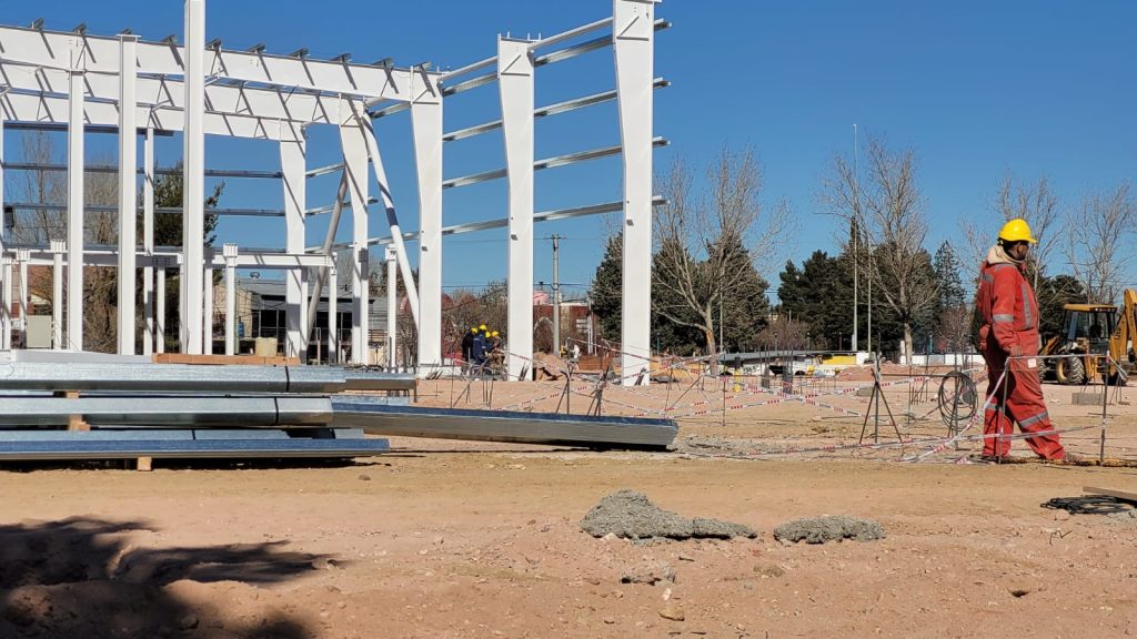 Desde esta semana, comenzó el montaje de la estructura metálica para la construcción del supermercado de la cadena francesa en Plaza Huincul.