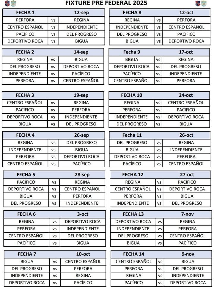 En primer lugar, Pérfora defiende el título del Pre Federal 2024 y en la primera fecha juega como local frente a Regina. El Formato la competencia enfrenta a 8 equipos en un ida y vuelta.