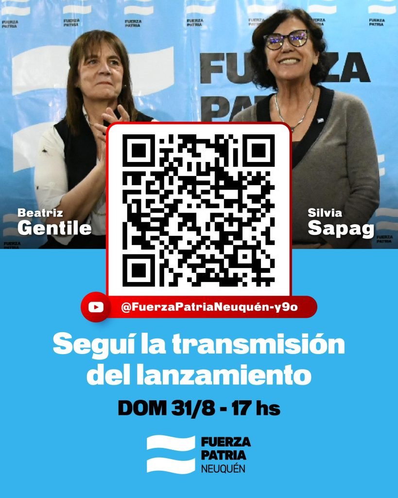 Cutral Co será escenario del lanzamiento de la campaña electoral del frente Fuerza Patria, en el marco del proceso legislativo nacional. El acto se realizará este domingo a partir de las 17:00 horas, en el salón de eventos ubicado en calle Lago Villarino 478, en el barrio Parque Este.