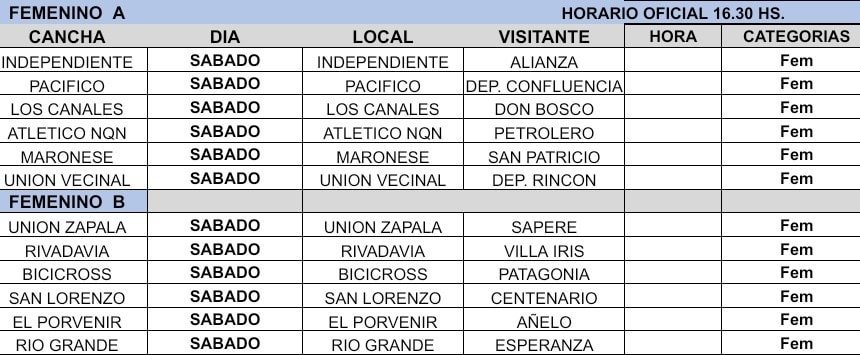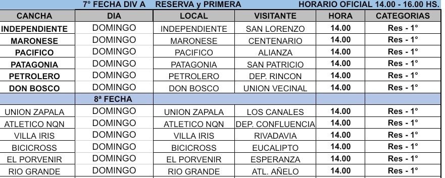 Alianza visita a Pacifico en la rama masculina y a Independiente en la rama femenina. Petrolero por su parte juega como local frente a Deportivo Rincón en Primera y Reserva y el Femenino visita a Atlético Neuquén.
