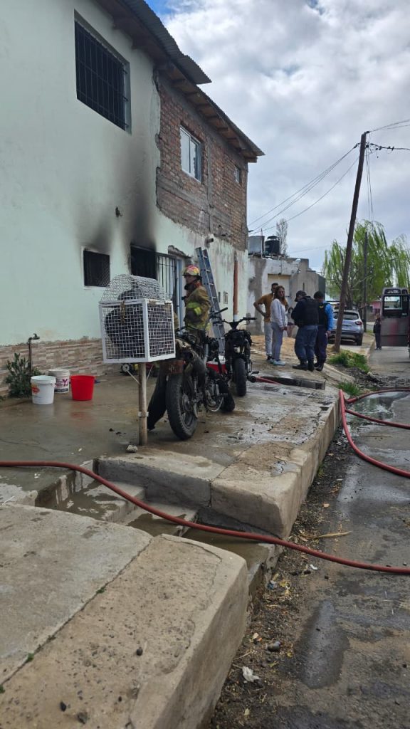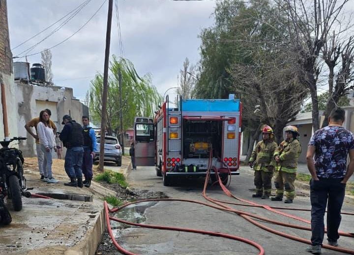 Alrededor de las 13 se desató hoy un incendio en la calle Julio de Caro en el barrio Central de Plaza Huincul.