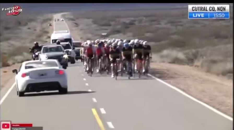 Las imágenes del procedimiento fueron captadas mientras la radio local Fuego transmitía en vivo la competencia ciclística, documentando tanto el incidente como la intervención policial.