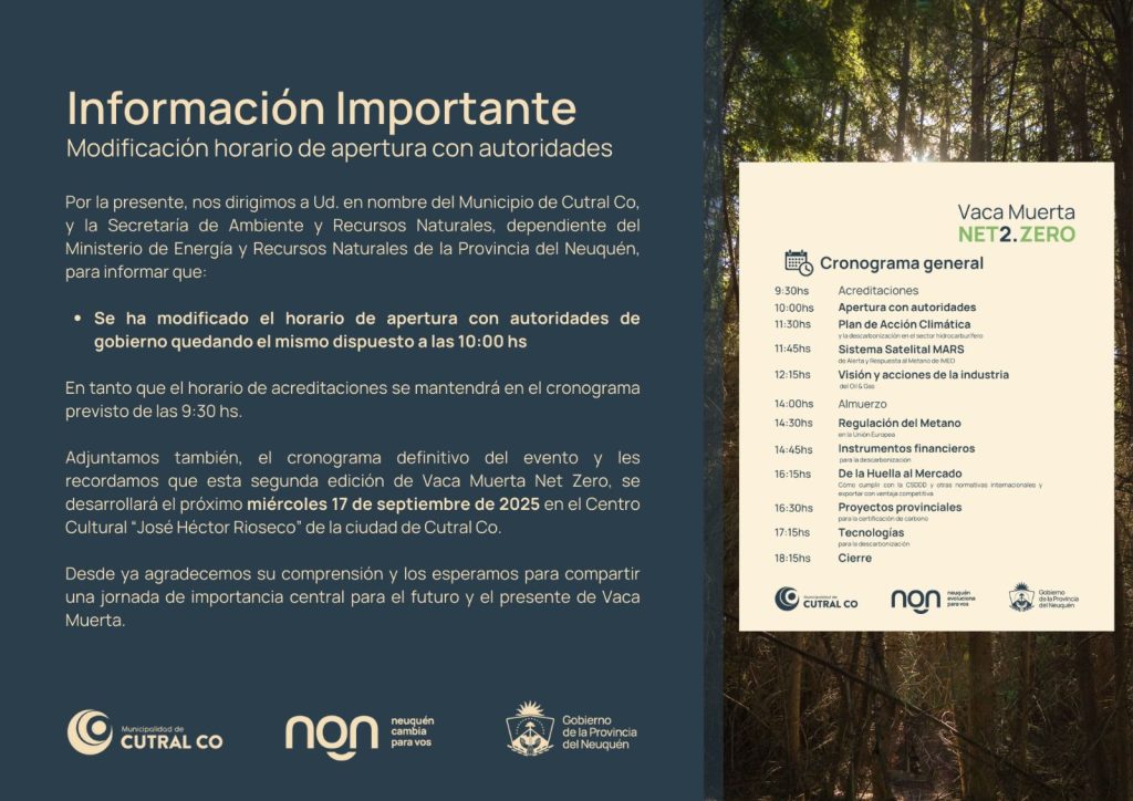 Está todo listo para la segunda edición de Vaca Muerta Net Zero que tiene sede en Cutral Co. Se trata de propuesta que busca conocer más sobre los planes o propuestas para avanzar en la transición energética y la neutralidad de carbono.