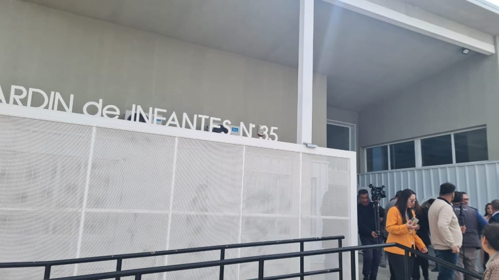 En ese lugar se hizo un recorrido, pero no hubo discursos. Los dos edificios para las infancias fueron proyectados con fondos nacionales que debieron luego renegociar la administración provincial para concluirlos.