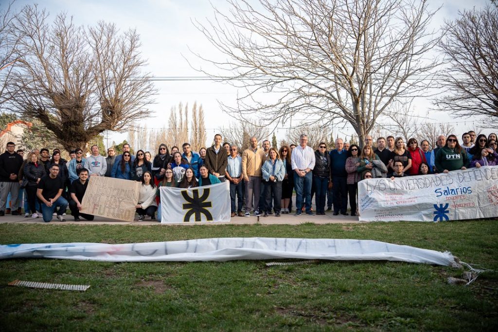 En la misma jornada donde se trató en la Cámara de Diputados trató los vetos al financiamiento universitario y la emergencia en pediatría y que fueron aprobados, estudiantes, docentes, no docentes y funcionarios, gremios y agrupaciones políticas se manifestaron en Plaza Huincul.