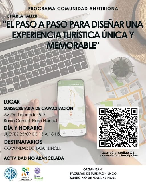 El taller está destinado a la comunidad de Plaza Huincul y no requiere arancel, brindando una oportunidad única para aprender cómo diseñar experiencias turísticas que potencien el desarrollo local.