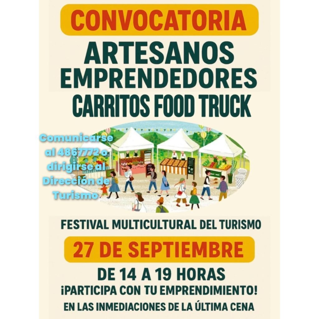 La dirección de Turismo de la ciudad invita a artesanos, emprendedores y propietarios de carritos o food trucks a participar del Festival Multicultural del Turismo, que se realizará el próximo 27 de septiembre en las inmediaciones de la Última Cena.