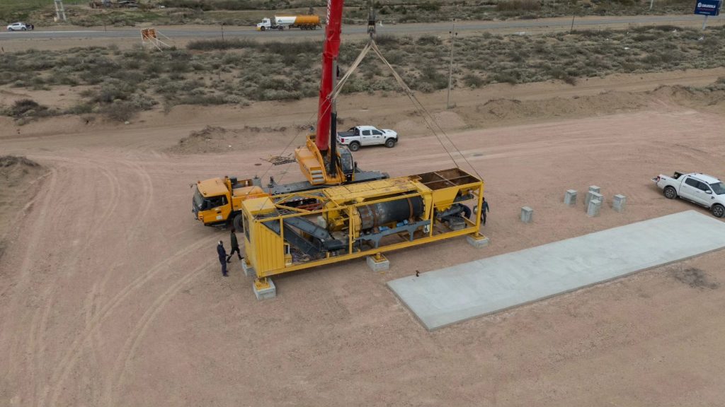 La planta de asfalto móvil de la empresa Fracchia fue trasladada y montada en el Parque Industrial de Plaza Huincul, en el sector este de la ciudad. La reubicación se concretó esta mañana, una vez finalizadas las tareas de acondicionamiento del predio.