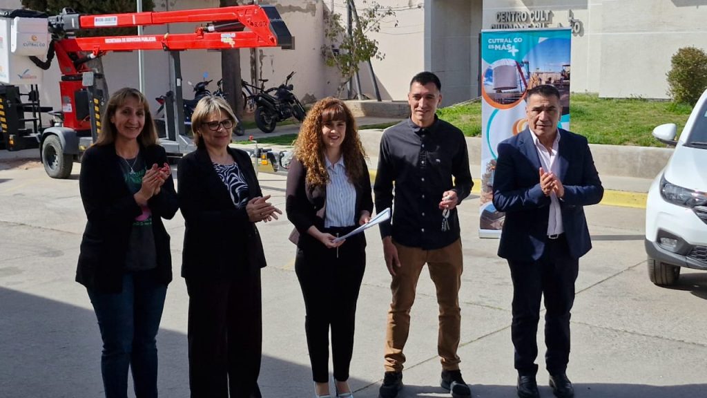 Un camión aguatero, dos motocicletas, un vehículo y un elevador hidráulico fueron entregados hoy a las diferentes secretarías de Cutral Co.