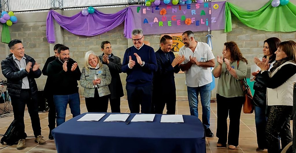 Posteriormente, se realizó la firma de convenio entre el municipio de Plaza Huincul y el Banco de Audífonos Neuquén Escucha (BANE).