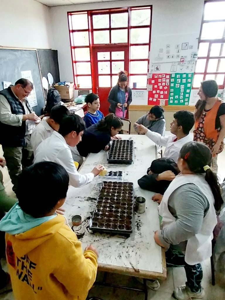 Durante la jornada, los estudiantes y docentes participaron de una instancia teórica y práctica en la que se compartieron conocimientos sobre el armado de huertas, el cuidado de los cultivos y las técnicas de siembra. Además, se hizo entrega de un kit con semillas de acelga, lechuga, pimiento, cilantro, perejil, tomate, zapallo tronco y espinaca, junto con bandejas de almácigos para la producción de plantines.