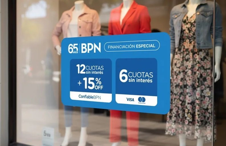 En este caso, la propuesta incluye financiación en hasta 12 cuotas sin interés con la tarjeta Confiable, y hasta 6 cuotas sin interés con tarjetas Visa y Mastercard BPN.