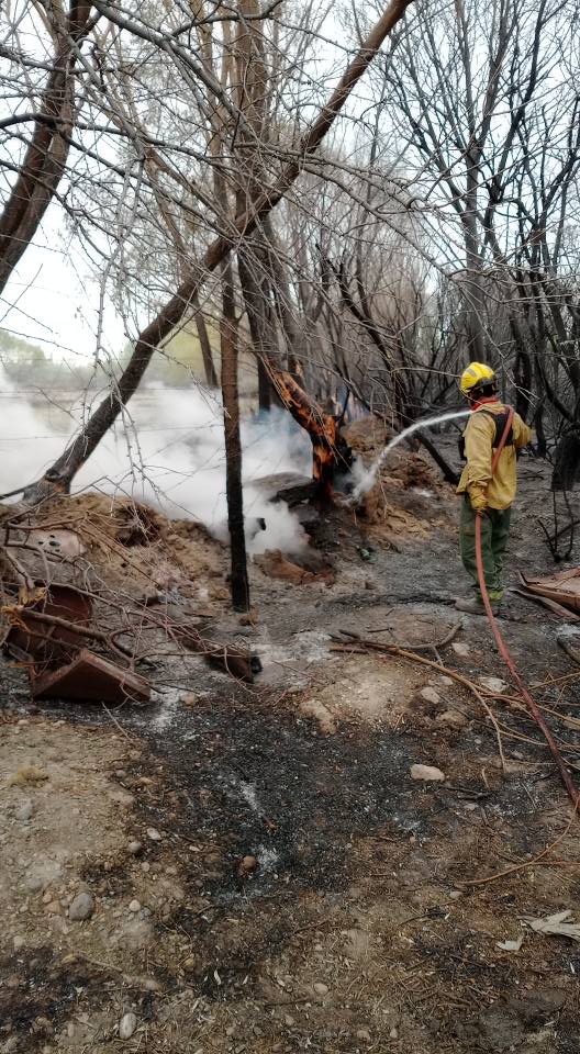 Personal del Cuerpo de Bomberos Central 10 llevó a cabo durante la jornada del sábado trabajos de enfriamiento en distintas zonas afectadas por el gran incendio que se desató días atrás en la localidad.
