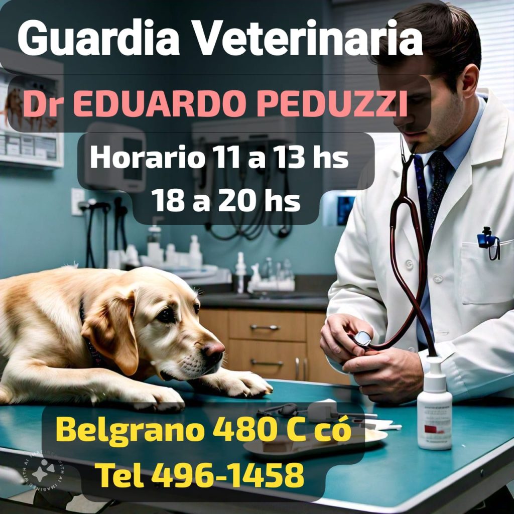 Este fin de semana, la guardia veterinaria en Cutral Co será atendida por el doctor Eduardo Peduzzi, quien brindará atención a las mascotas que requieran asistencia urgente.
