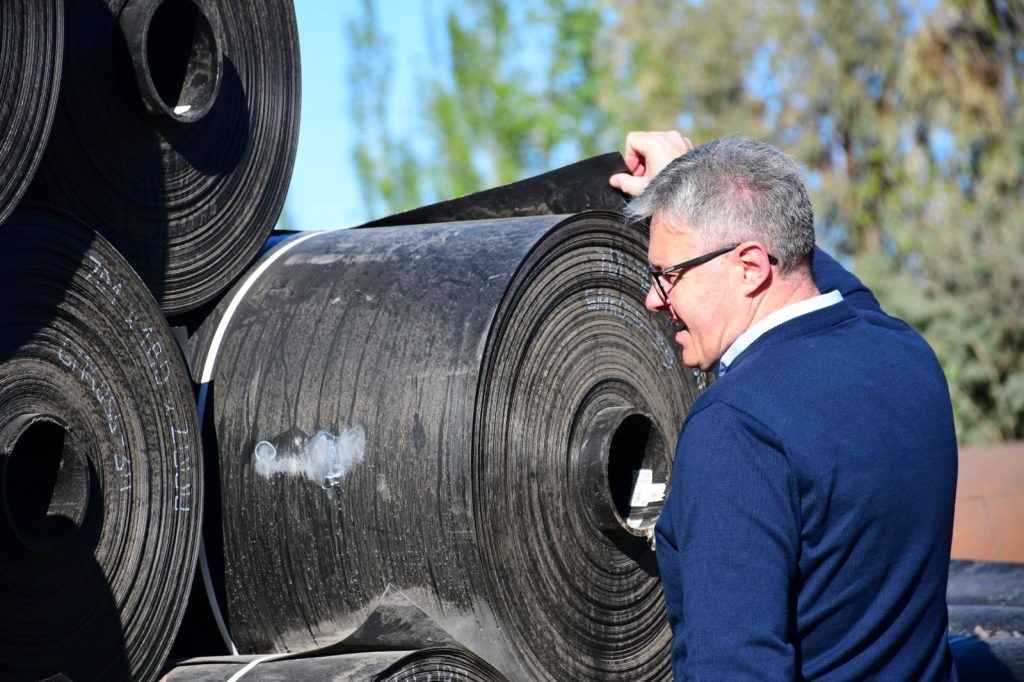 El foco de la visita del jefe comunal estuvo puesto en el arribo de las primeras 38.000 metros cuadrados de mantas impermeabilizantes. Larraza subrayó que este material es fundamental para el desarrollo de la obra, ya que se trata de un material importado que no se encuentra en Argentina, lo que convierte su llegada en un “logro”.