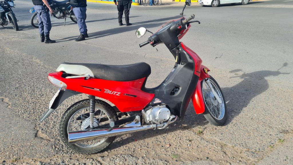 Esta mañana en la esquina de Eguinoa y Tierra del Fuego se produjo un incidente vial que involucró a una moto en la que circulaban dos personas y un automóvil. Una de las mujeres que iba en la motocicleta fue trasladada hasta el hospital en la ambulancia.