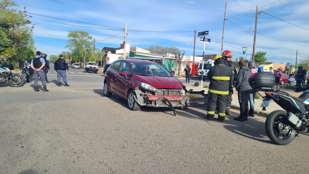 A pocos metros del puente se produjo esta colisión. En el automóvil Ford Fiesta que quedó con su frente dañado era guiado por una conductora y detuvo su marcha en Tierra del Fuego a la altura de la gomería.